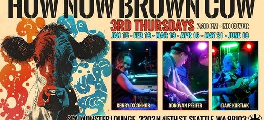 How Now Brown Cow is excited to announce our new monthly residency at The Sea Monster Lounge in Seattle, kicking off in September 2024. Join Dave, Don, and Kerry as your hosts for the early show every 3rd Thursday of the month at the iconic Sea Monster Lounge in Wallingford. From 7:30 to 9:30 PM, enjoy an evening of jazz with How Now Brown Cow, a band known for its unique sound. Best of all, there’s no cover charge for this 21+ event!